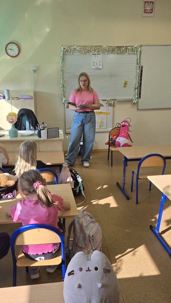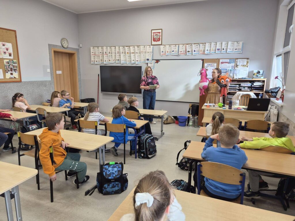 Podczas spotkań z uczniami I klas w Szkole Podstawowej w Zegrzu Pomorskim i Szkole Podstawowej im. Wiesławy Szymborskiej w Konikowie rozmawialiśmy o higienie i zdrowiu. Punktem wyjścia było opowiadanie o dwóch złośliwych bakteriach – Plamku i Brudku, które zamieszkały w brudnych paznokciach pewnej dziewczynki.