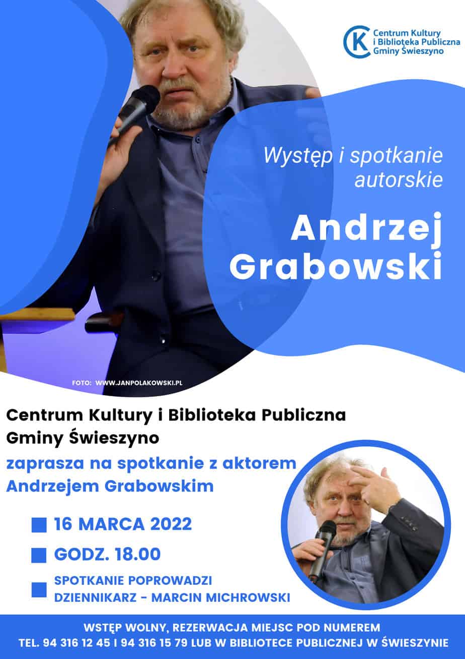 16 marca w sali widowiskowej Centrum Kultury i Biblioteki Publicznej w Świeszynie odbyło się spotkanie autorskie z wybitnym aktorem teatralnym i filmowym, artystą kabaretowym, reżyserem, scenarz...