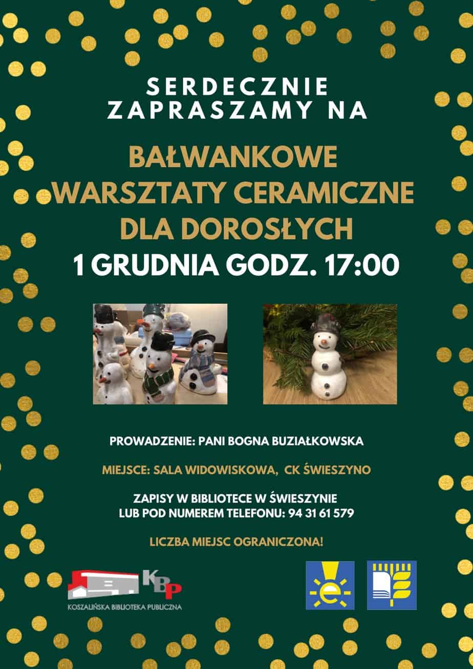 Aktualizacja z dn. 30.11. – zwolniło się kilka miejsc na warsztaty! Serdecznie zapraszamy do zapisów młodzież i dorosłych. Serdecznie zapraszamy na Bałwankowe Warsztaty Ceramiczne dla dorosłych,...