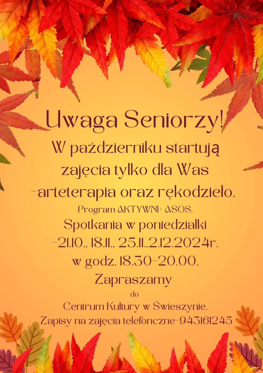 Drodzy Seniorzy! Serdecznie zapraszamy do udziału w fantastycznych zajęciach z arteterapii oraz rękodzieła. Spotkania będą odbywały się w poniedziałki w godz. 18:30 – 20:00 w sali nr 8 w Centrum...