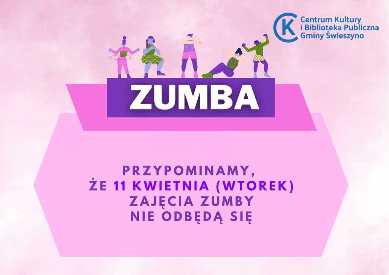 Przypominamy, że 11 kwietnia (wtorek) zajęcia zumby nie odbędą się....