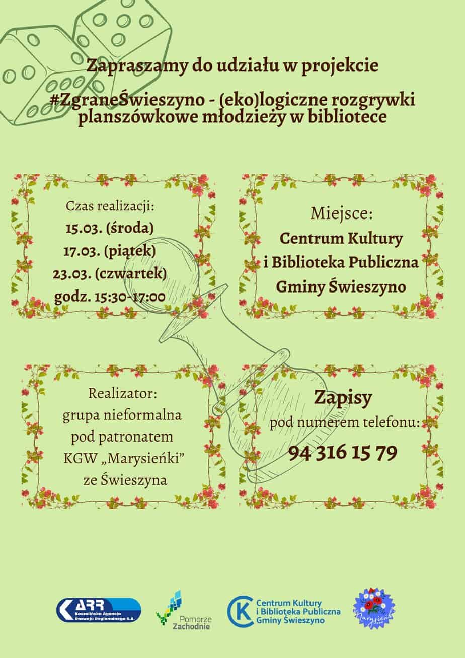 Serdecznie zapraszamy wszystkich do wspólnego grania w ramach projektu #ZgraneŚwieszyno – (eko)logiczne rozgrywki planszówkowe młodzieży w bibliotece. 15.03. (środa), 17.03. (piątek), 23.03. (czwartek...