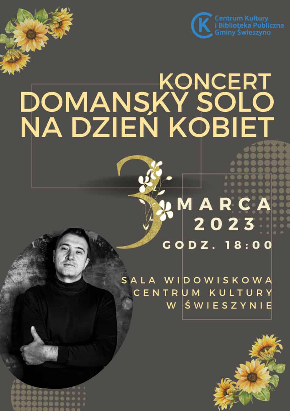 Serdecznie zapraszamy dnia 3 marca 2023 roku, godz 18:00, na koncert z okazji Dnia Kobiet. Zaśpiewa dla Nas solo Sylwester Domański „Domansky”. W repertuarze piosenki takich wykonawców jak...