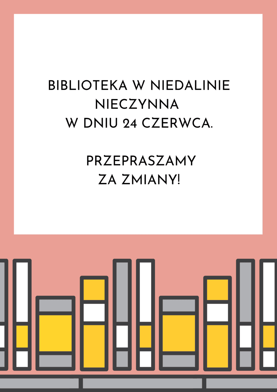 Informujemy, że 24 czerwca Biblioteka w Niedalinie będzie nieczynna. Przepraszamy za zmiany!...