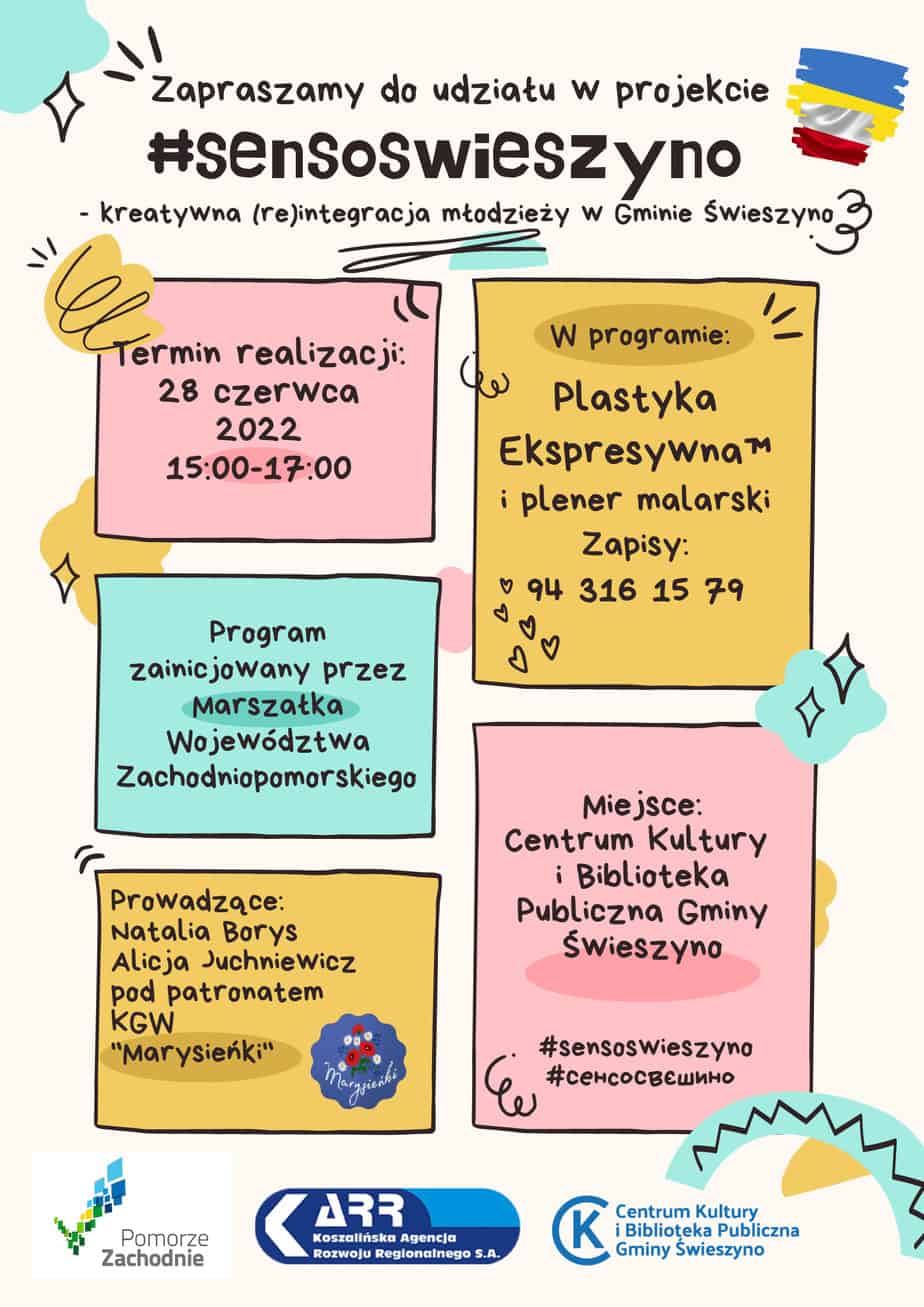 Serdecznie zapraszamy dzieci, młodzież na warsztaty z Plastyki Ekspresywnej ™ i plener malarski , które organizuje i realizuje grupa nieformalna pod patronatem KGW „Marysieńki” w ramach projektu: #sen...