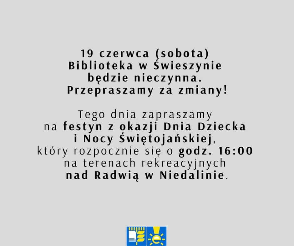 W związku z funkcjonowaniem w Multimedialnym Centrum Kultury e-EURECE – Bibliotece Publicznej w Świeszynie Powiatowego Punktu Szczepień Biblioteka w Świeszynie jest czynna stacjonarnie w soboty ...