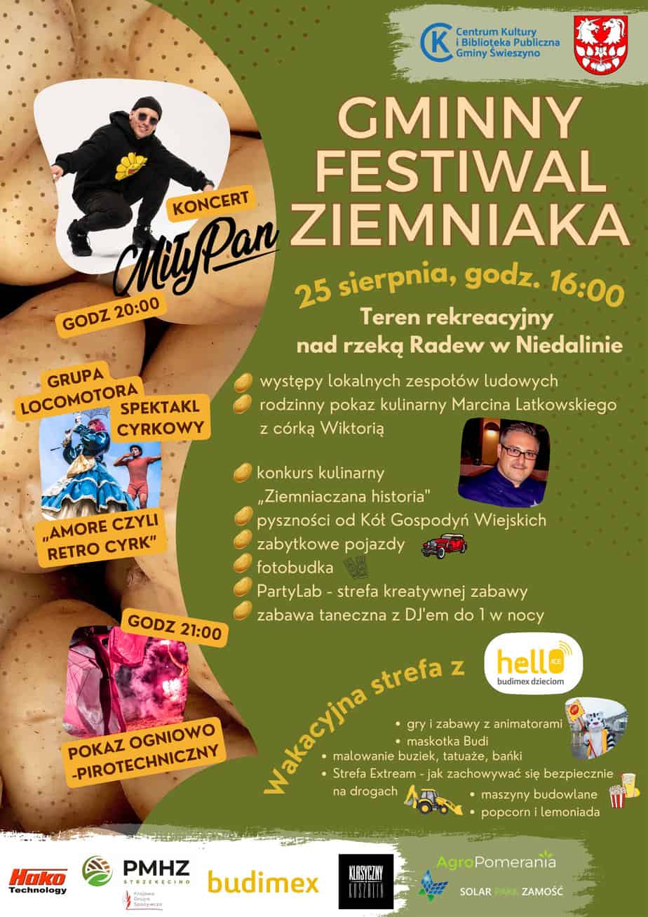 Serdecznie zapraszamy na Gminny Festiwal Ziemniaka, który odbędzie się 25 sierpnia od godziny 16:00 na terenie rekreacyjnym nad rzeką Radew w Niedalinie. Zapraszamy!...