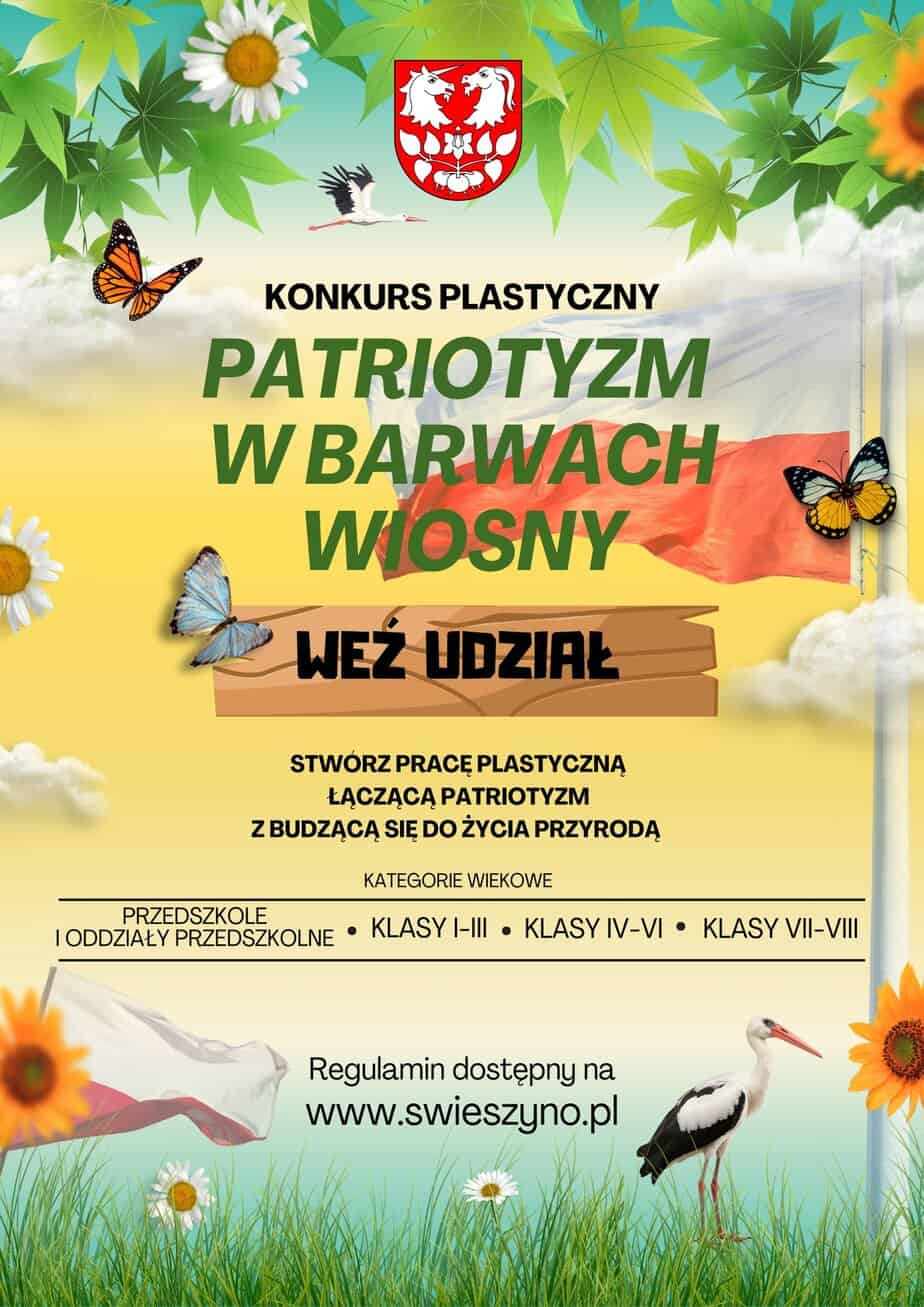 Serdecznie zapraszamy wszystkich przedszkolaków i uczniów szkół podstawowych z terenu Gminy Świeszyno do wzięcia udziału w konkursie plastycznym „Patriotyzm w barwach wiosny”. Stwórz dzieło łącz...