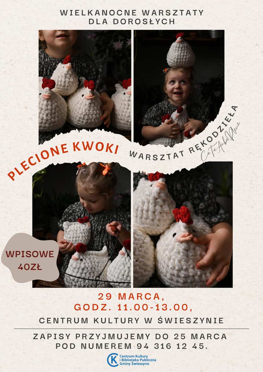 Zapraszamy dorosłych na wyjątkowe warsztaty „Plecione Kwoki”, podczas których własnoręcznie stworzycie piękne plecionki – idealne na wielkanocne dekoracje! To doskonała okazja, by poczuć a...