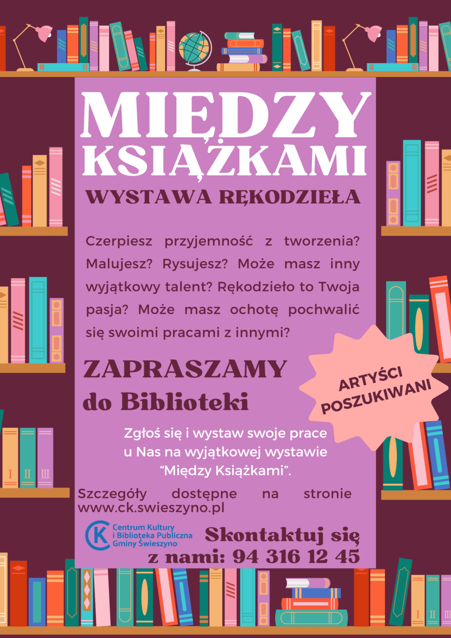 Zapraszamy artystów do udziału w wyjątkowej wystawie „Między książkami”! Jeśli tworzysz sztukę w różnorodnych technikach i tematach, to ta wystawa jest właśnie dla Ciebie. Zgłoś swoje prac...