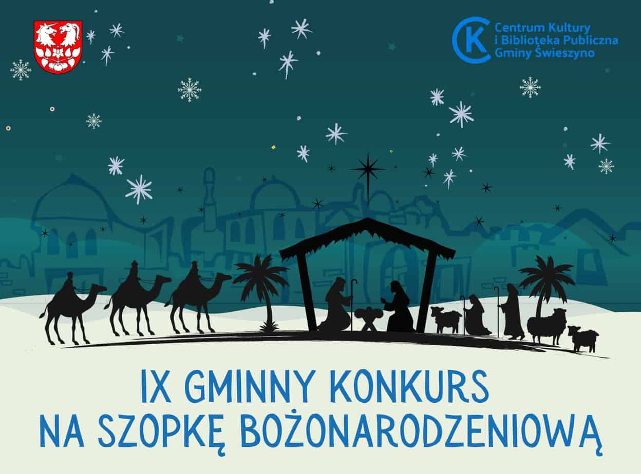Centrum Kultury i Biblioteka Publiczna Gminy Świeszyno ogłasza IX Gminny Konkurs na Szopkę Bożonarodzeniową oraz zaprasza do udziału. Konkurs skierowany jest do dzieci i młodzieży, rodzin, zespołów kl...