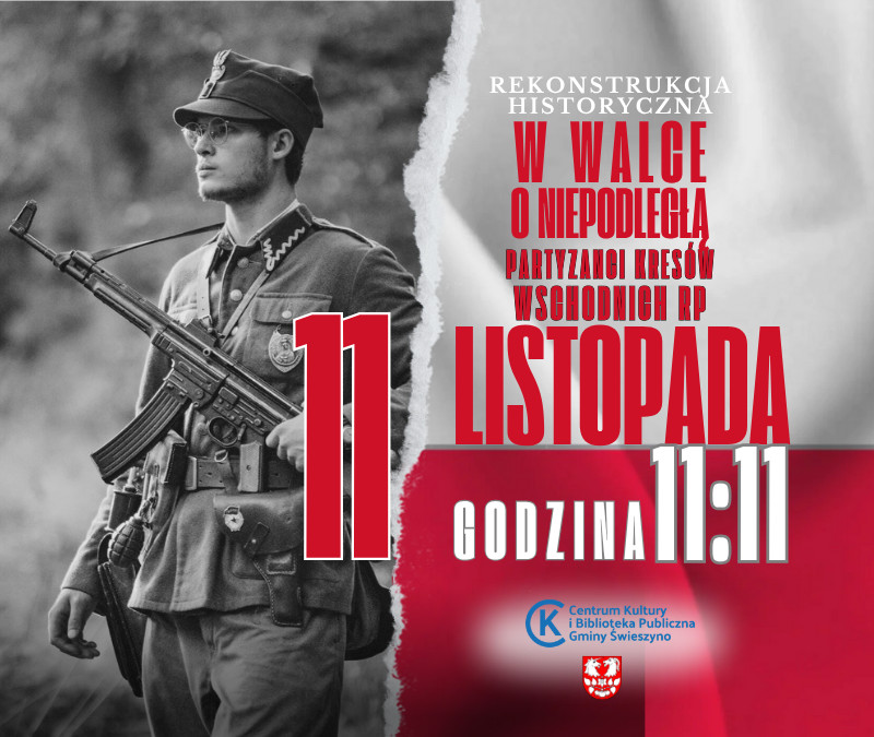 Już 11 listopada o godzinie 11:11 zapraszamy na niezwykłe wydarzenie – rekonstrukcję historyczną „W walce o Niepodległą – Partyzanci Kresów Wschodnich RP”, organizowaną w ramach gminnych obchodów Naro...