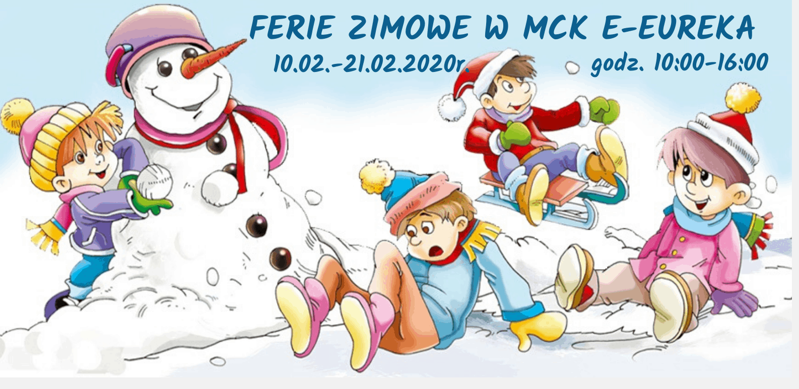 Serdecznie zapraszamy do zapisów na ferie zimowe organizowane przez MCK e-Eureka ☃️. Więcej szczegółów i zapisy pod nr telefonu 94 316 12 45. Ilość miejsc ograniczona ????????...