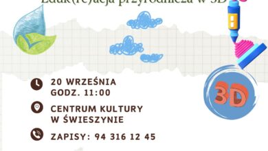 Serdecznie zapraszamy starsze dzieci i młodzież do zapisów na warsztaty edukacyjne z wykorzystaniem długopisów 3D w ramach projektu Eduk(re)acja przyrodnicza…
