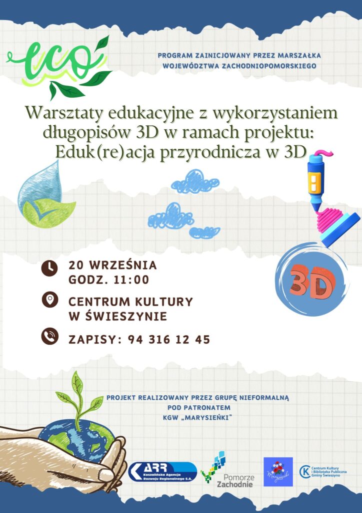Serdecznie zapraszamy starsze dzieci i młodzież do zapisów na warsztaty edukacyjne z wykorzystaniem długopisów 3D w ramach projektu Eduk(re)acja przyrodnicza w 3D: