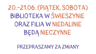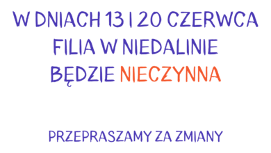 Informujemy, że nasze placówki biblioteczne będą funkcjonowały w okresie wakacji w zmienionym harmonogramie godzin otwarcia.