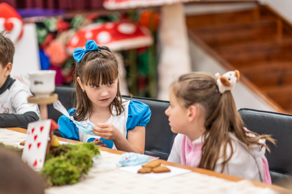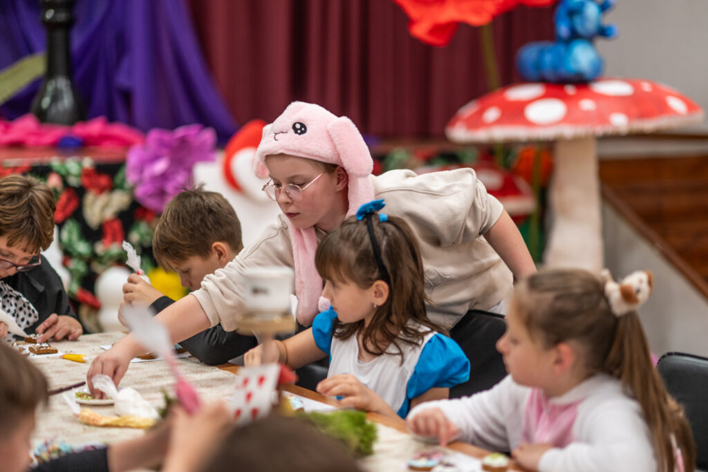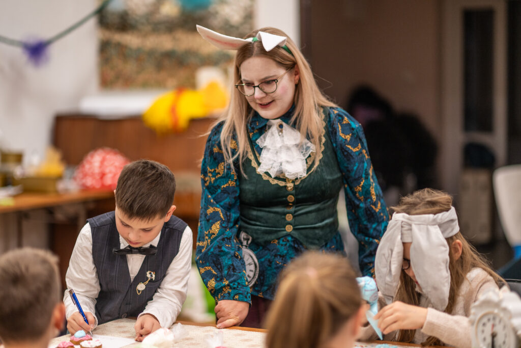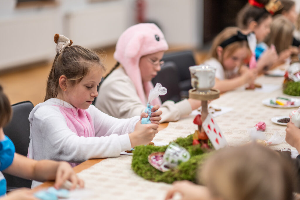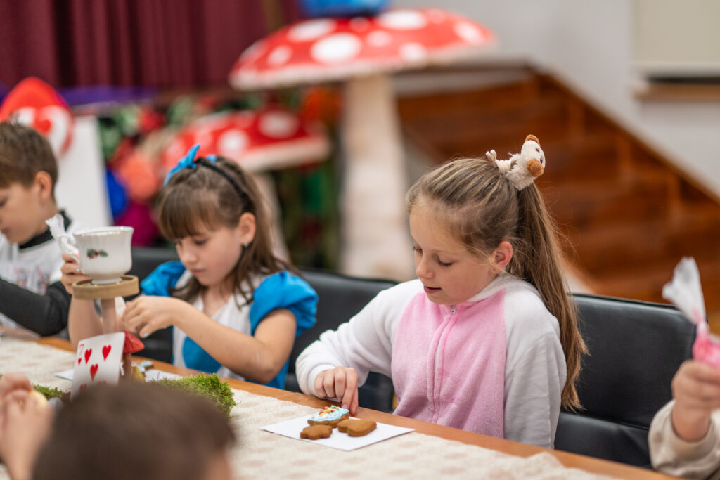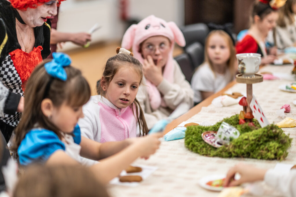 „Do Dzieła. Noc w Krainie Czarów”. Za dziurką od klucza na kolejną grupę śmiałków czekała magia, zagadki i odrobina szaleństwa. Dzieci poznały postaci z książki, wspólnie tworzyliśmy piernikowe smakołyki do herbatki z Kapelusznikiem i rozwiązywaliśmy zagadki w ogrodzie Królowej Kier. Nie zabrakło artystycznych zajęć i tworzenie magicznych pudełek z wiecznie spóźnionym i w ciągłym biegu Białym Królikiem. To była noc, w której czas znów stanął w miejscu…