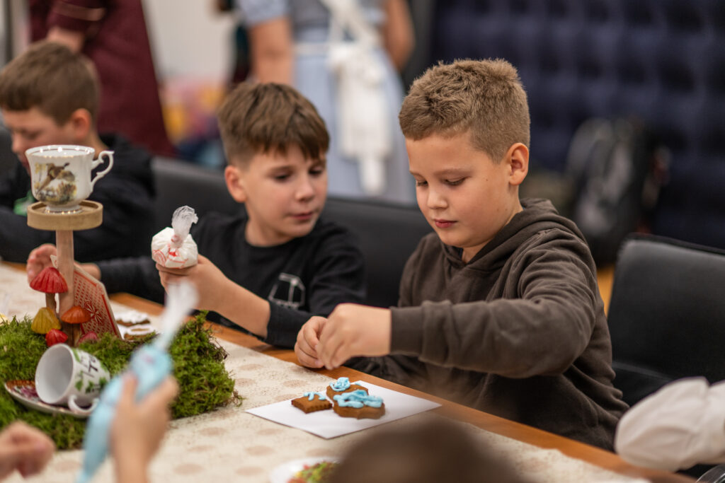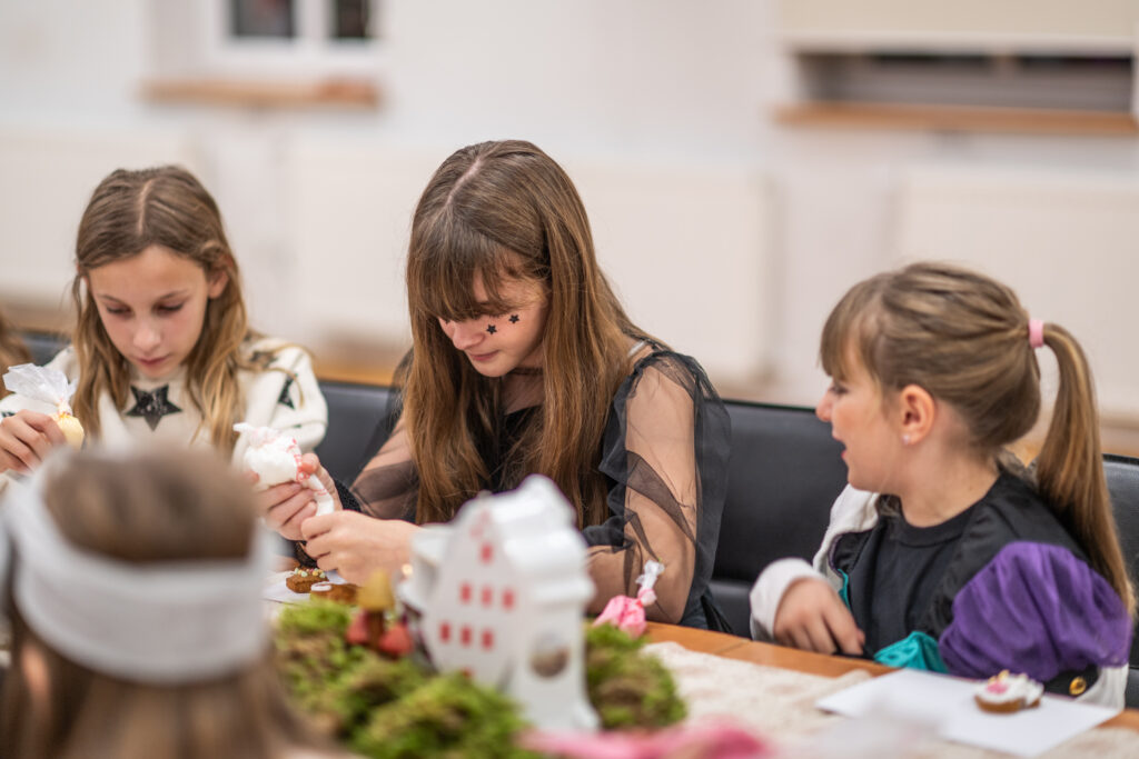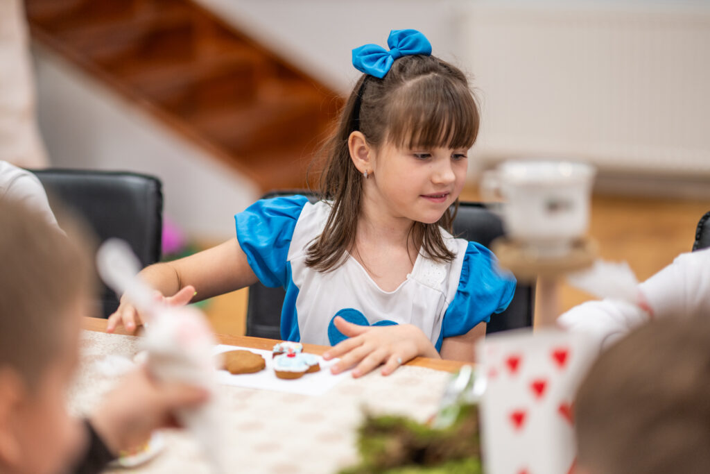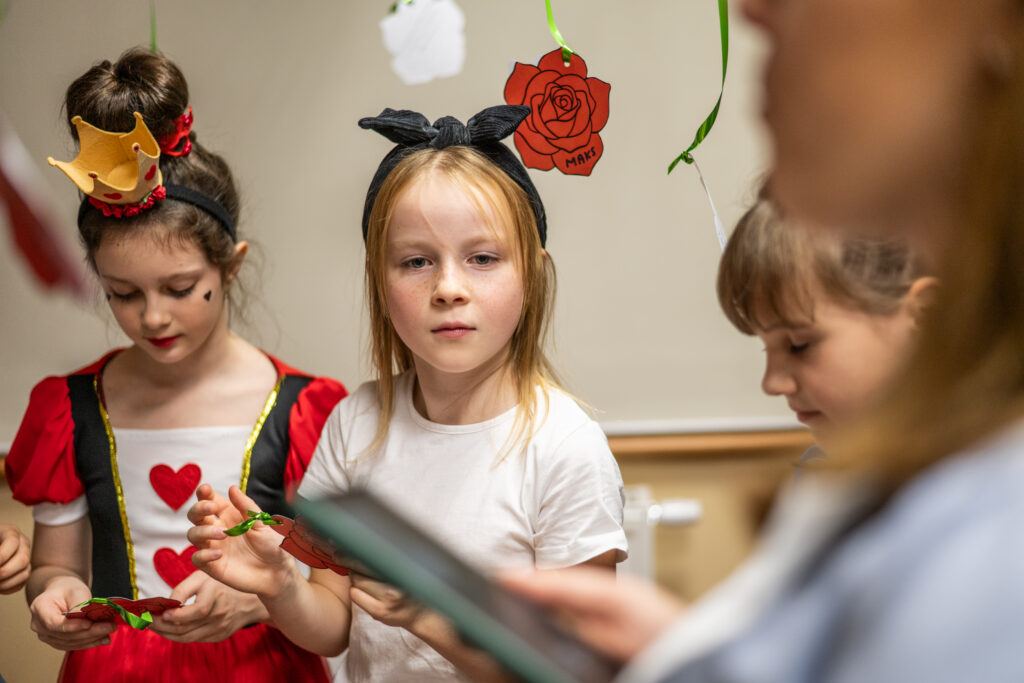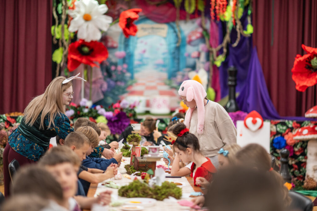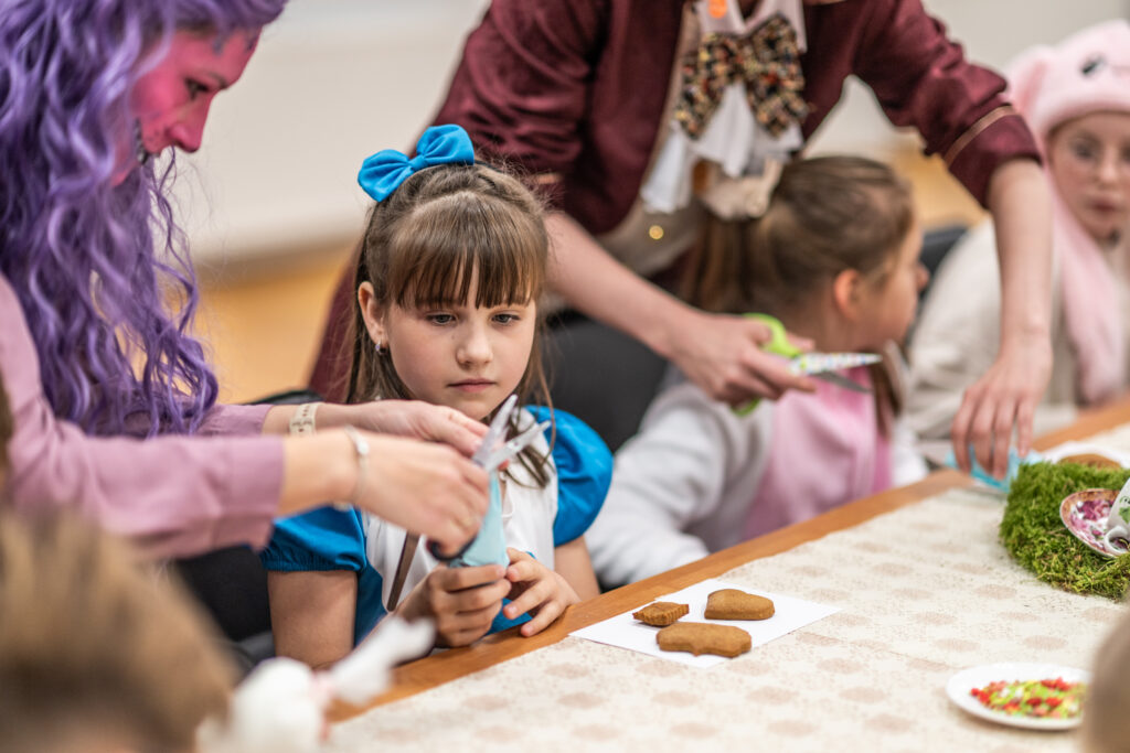 „Do Dzieła. Noc w Krainie Czarów”. Za dziurką od klucza na kolejną grupę śmiałków czekała magia, zagadki i odrobina szaleństwa. Dzieci poznały postaci z książki, wspólnie tworzyliśmy piernikowe smakołyki do herbatki z Kapelusznikiem i rozwiązywaliśmy zagadki w ogrodzie Królowej Kier. Nie zabrakło artystycznych zajęć i tworzenie magicznych pudełek z wiecznie spóźnionym i w ciągłym biegu Białym Królikiem. To była noc, w której czas znów stanął w miejscu…