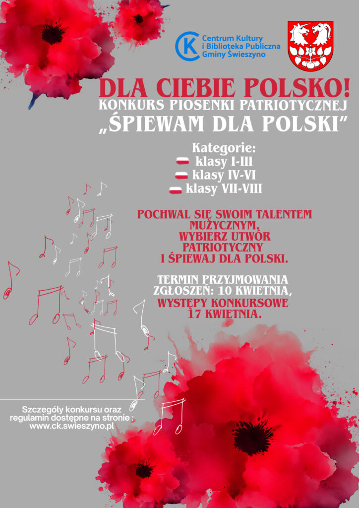 Zachęcamy do udziału w Konkursie piosenki patriotycznej „Śpiewam dla Polski”.