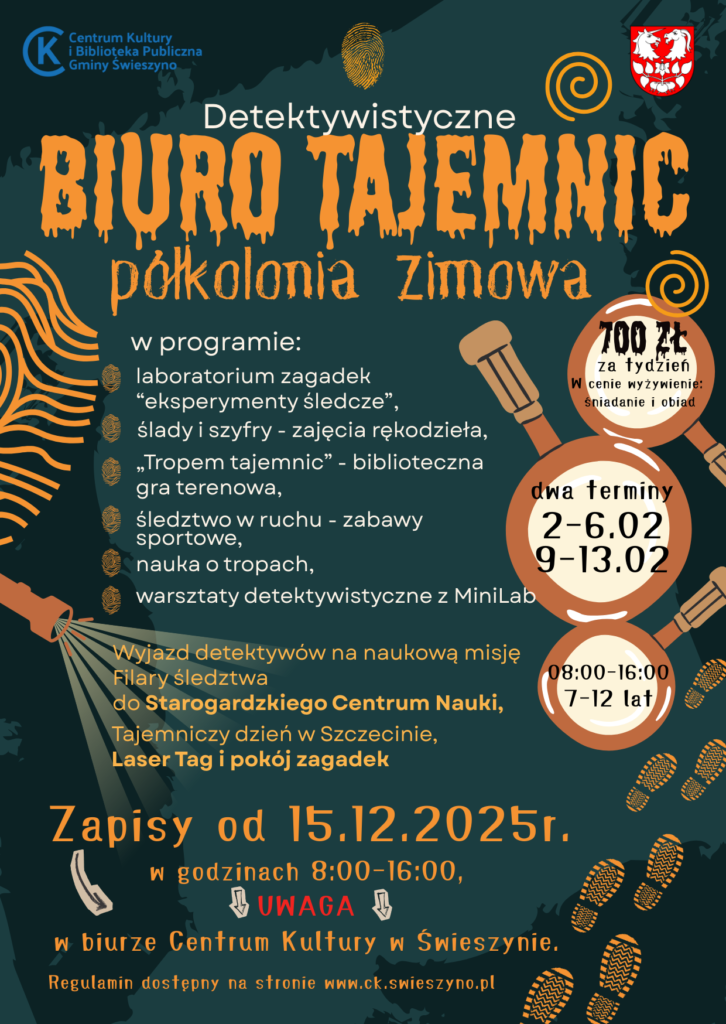 Zapisy odbywają się WYŁĄCZNIE OSOBIŚCIE w biurze Centrum Kultury w Świeszynie