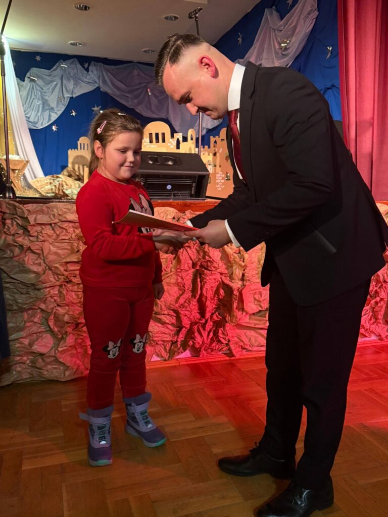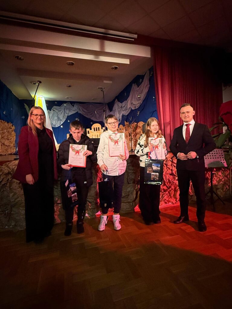 Podczas wspólnego kolędowania, odbyło się również uroczyste wręczenie nagród laureatom tego wyjątkowego konkursu🎁 które wręczył Marek Brzostko- Wójt Gminy Świeszyno oraz Dyrektor naszego Centrum Karolina Markiewicz.